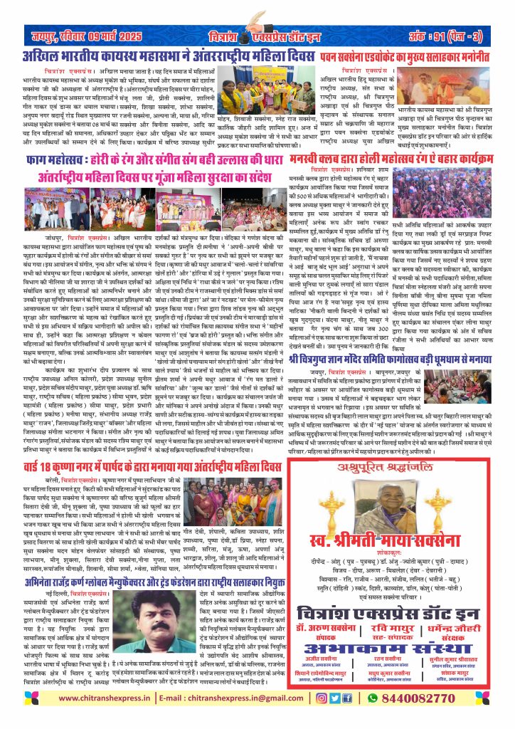 09 मार्च 2025 चित्रांश एक्सप्रेस डॉट इन