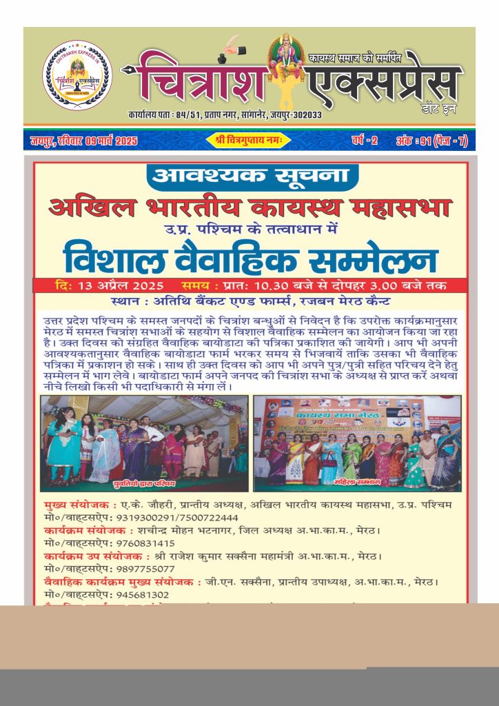 चित्रांश एक्सप्रेस डॉट इन कायस्थ समाज़ में हो रही गतिविधियों को एकत्रित कर सब चित्रांशों तक पहुंचाने का एक माध्यम...