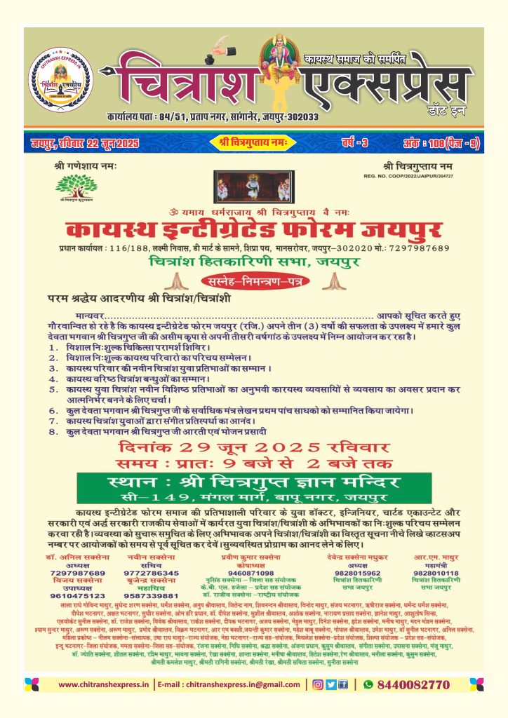 चित्रांश एक्सप्रेस डॉट इन कायस्थ समाज़ में हो रही गतिविधियों को एकत्रित कर सब चित्रांशों तक पहुंचाने का एक माध्यम...